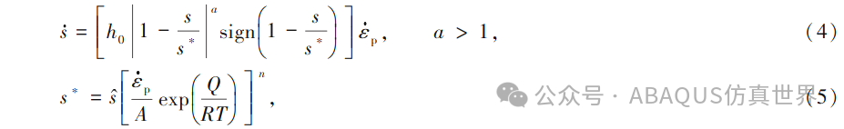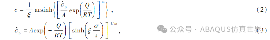 其中, ξ 为应力乘子, εp 为非弹性应变率,A 为指数因数,Q 为激活能,R 为普适气体常数,T 为 绝对温度,m 为应变率敏感指数. 变形抗阻 s 的演化方程表示为: