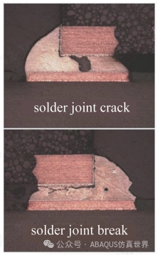 PCB高低温循环热冲击试验采用的加载曲线如图1所示,温度范围为-40℃到125℃,升降温速率为20℃/min,保温时间为30分钟。PCB在循环中产生热应力和应变,导致焊点疲劳破坏,常见的焊点失效形式如图2所示。