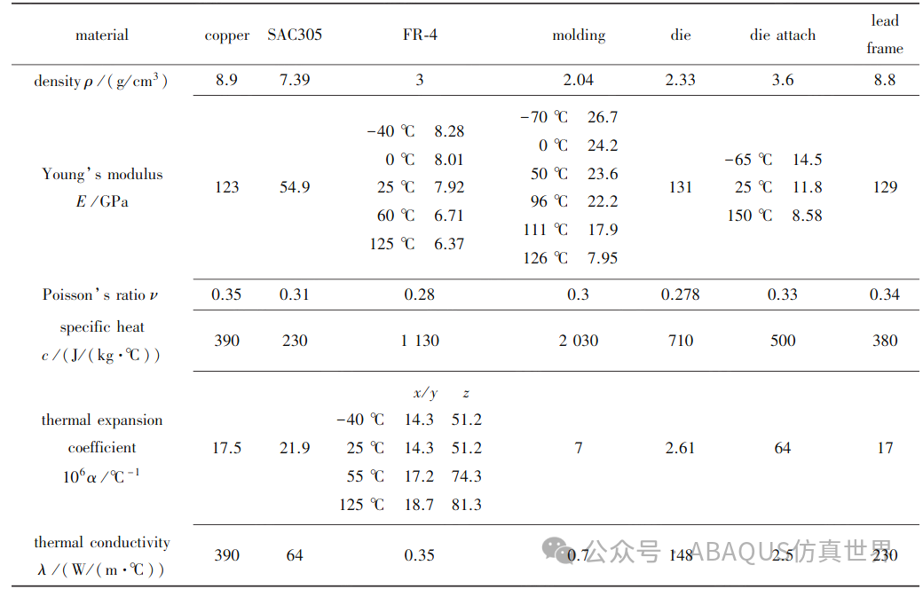表3列出了PCB材料的线弹性参数,表4为SAC305的Anand本构参数。