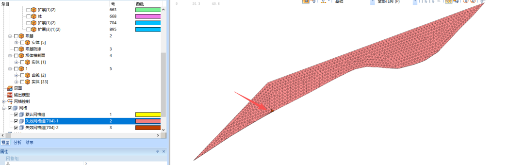 虽然划分失败,但是软件还是给出了两个失效的网格组,如下图所示,