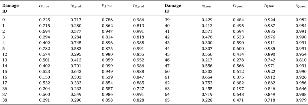 这说明该方法在构件层面具有较高精度,但在构件端部层面尚存在不足。有关预测与真实损伤参数的详细对比见表4。