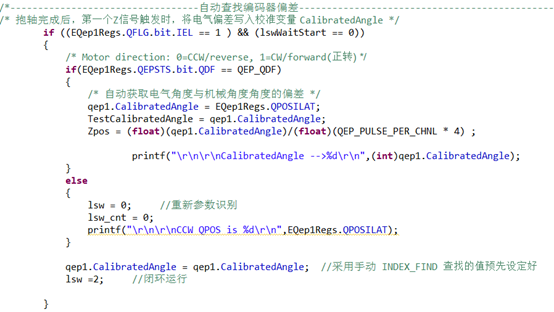 如果预定位结束,实际转子轴的位置如上,则说明ABZ编码器安装存在偏差。使用IF强拖一圈,遇到Z信号后锁存位置寄存器的值,该值就是偏差值,补偿到ABZ计算位置角度中即可消除因为安装偏差带来的影响。