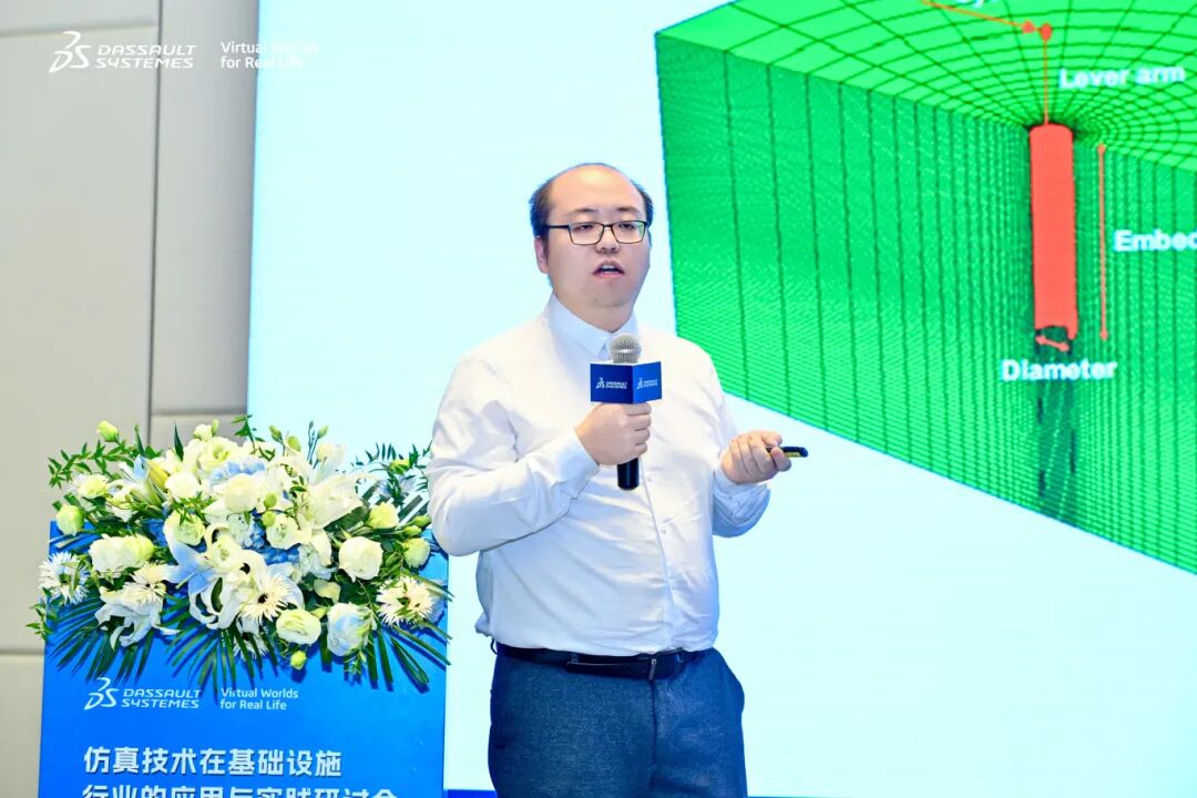 德国汉诺威大学岩土工程研究所研究员曹舒瀚博士在题为“Abaqus在岩土工程中的应用”的报告中结合风电基础、桩土作用、基坑开挖等场景,介绍了Abaqus软件的显著优势和应用价值。