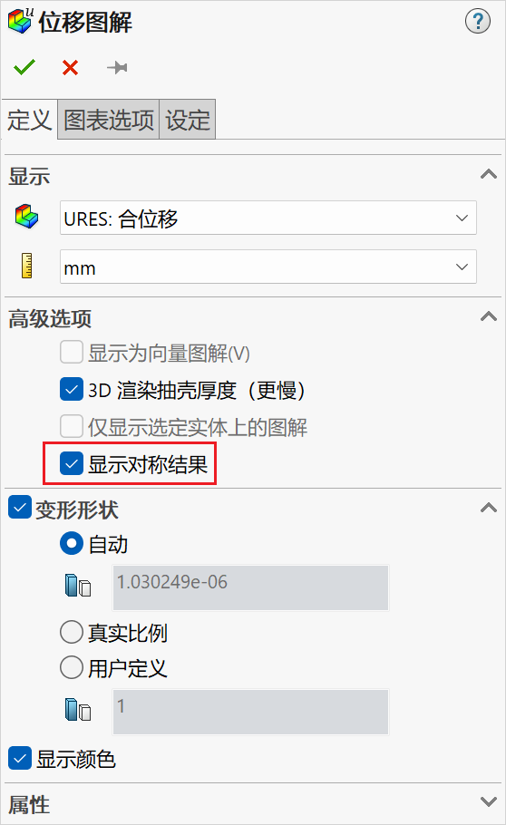 在高级选项中勾选“显示对称结果”,如下图所示。