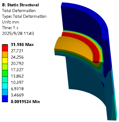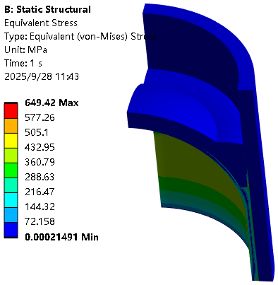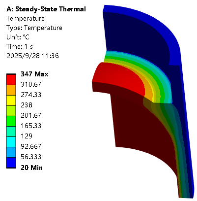 通过Ansys Workbench(2023R1)软件建立压力容器热固耦合分析,获得温度及结构结果。