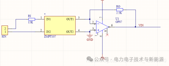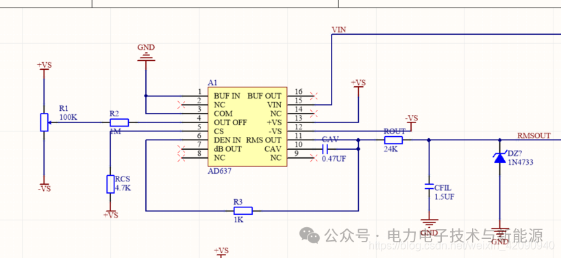 设计思路:通过电压互感器将电压读取到,并放缩到合适的范围内,输入给有效值检测芯片,再将有效值检测芯片的输出给AD