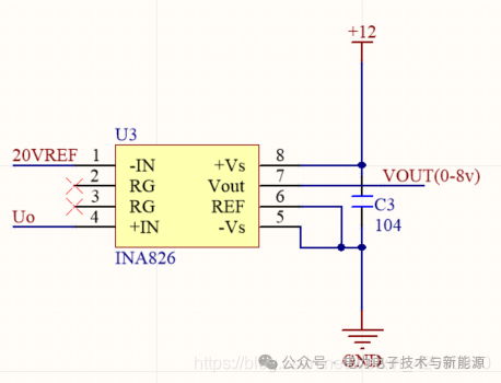 2、通过仪放将Uo与20v差分(注:826的REF引脚为输出基准)