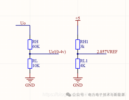 要求:采集一个输出范围为20V-28V的Uo电压信号到0-3.3V的AD。