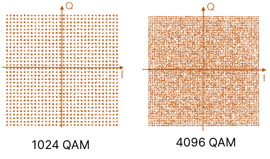 星座图上的 “点越多”(QAM 等级越高),每个符号带的数据就越多,但也越 “娇气”—— 如果信号受到干扰(比如噪声),很容易 “认错点”(比如把 “1001” 错认成 “1010”),所以高阶 QAM(比如 1024QAM)需要更稳定的信号环境(比如 5G 的近基站区域、WiFi 的近距离场景)。