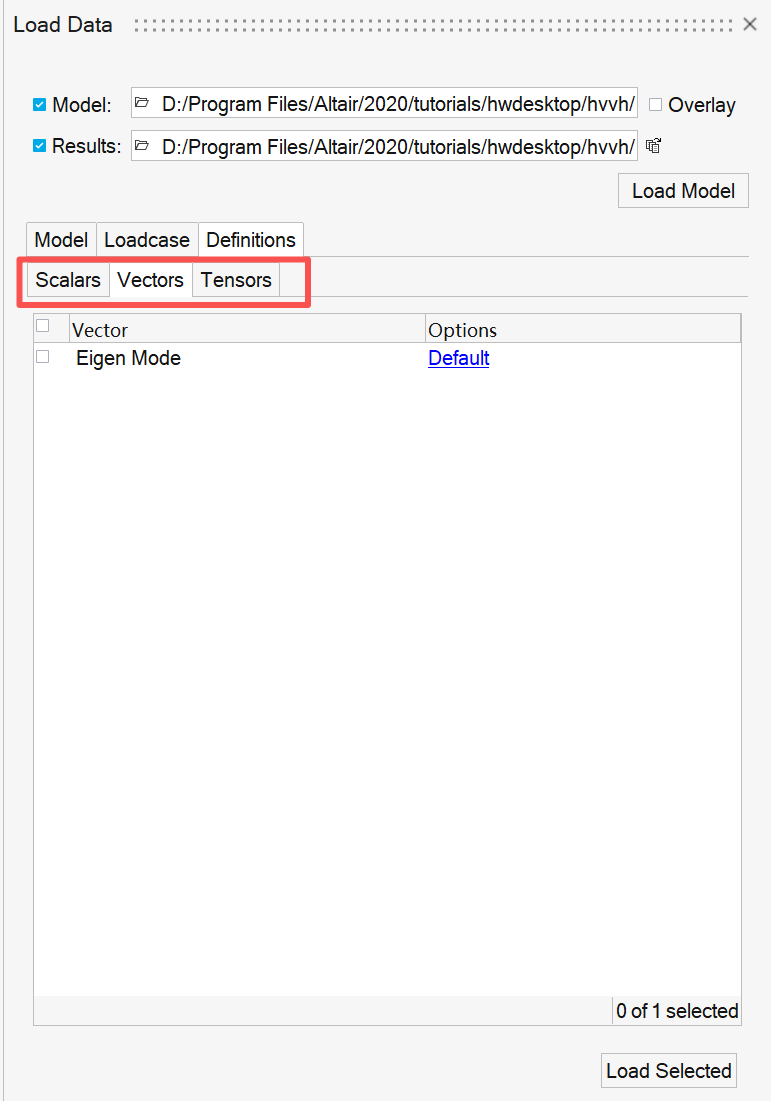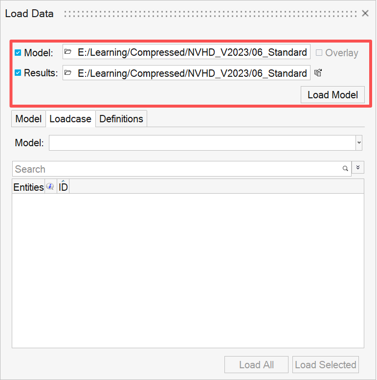 选项卡操作在 Load Model and Results 区域,您可以灵活地配置数据源: