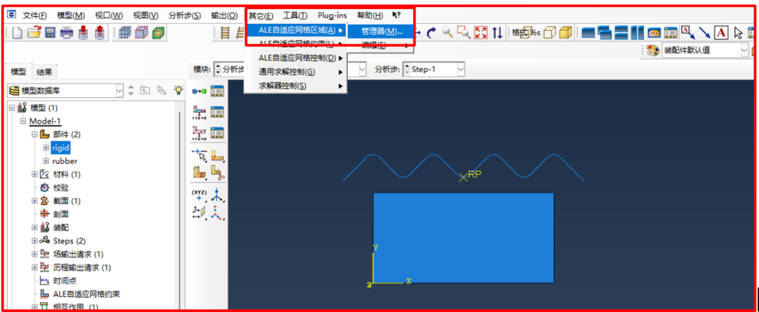 设置好了分析步,就开始设置ALE自适应网格划分,在分析步模块中,选择“其他>ALE自适应网格区域>管理器”,见图5。