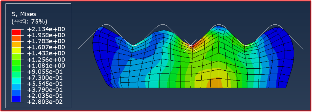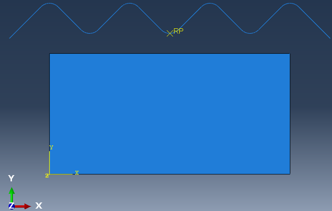 Abaqus/Explicit ALE自适应网格可作为连续自适应网格划分工具,用于大变形的瞬态分析问题(如动态冲击、穿透和锻造问题),在预计会有大变形的问题中,自适应网格划分所带来的网格质量的提高可以防止由于严重的网格畸变而导致分析终止。在这些情况下,可以使用自适应网格来获得比纯Lagrangian分析更快、更准确、更健壮的解决方案。本文中,主要讨论以下问题:正弦形状的模具向下运动,使矩形截面的橡胶坯件变形,分析橡胶坯件的受力情况,见图1。