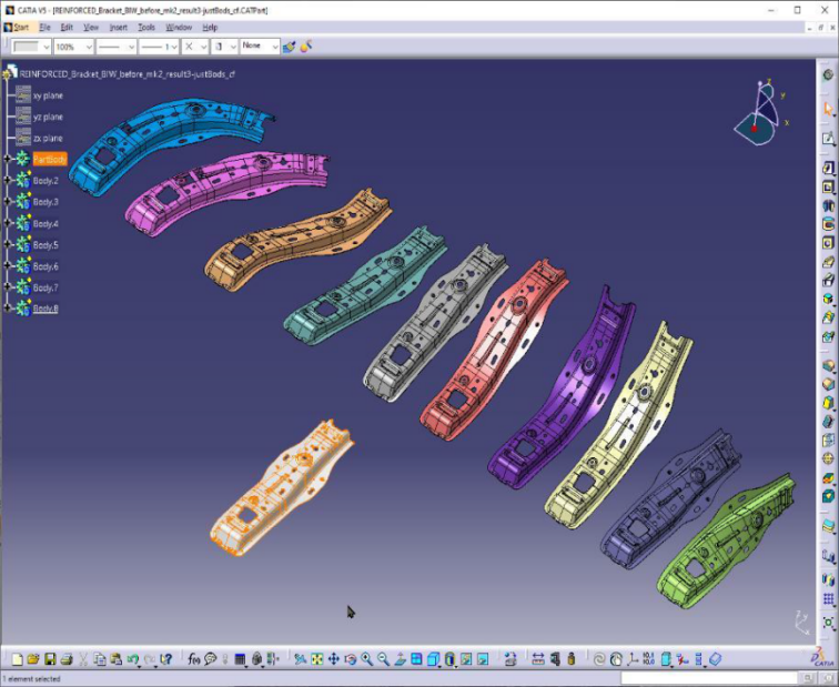 导出到CATIA V5(一个原始CAD、十个变形后的CAD)