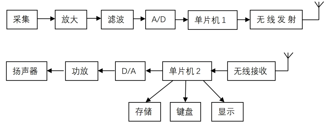 研发一个语音无线通信系统,系统的功能框图如图所示。