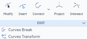 编辑板块主要是对线和点的操作。如插入点,投影线,这里有两个功能我觉得是比较重要的,就是Intersect和Curves Transform,第一个是找到两个线的交点,第二个是偏置线,在我们工作中,需要按照法规精密摆放工装的时会很有用。