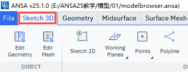 今天讲一下ANSA25版本的Sketch 3D,也就是3D草图功能。说实话,这些功能我在工作中用的极少。
