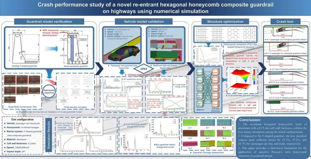 Crash performance study of a novel re-entrant hexagonal honeycomb composite guardrail on highways using numerical simulation