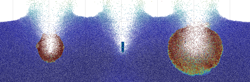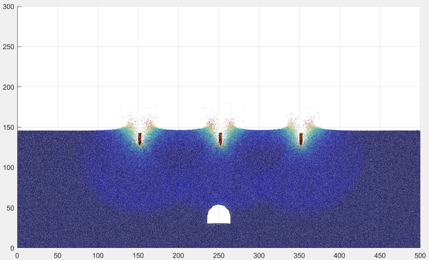 前阵,伊朗核设施遭钻地弹打击。钻地弹利用弹头极高的末端速度所产生的强大动能撞开地表面,钻入地下打击地下设施。离散元法可以很有效地模拟这一过程。