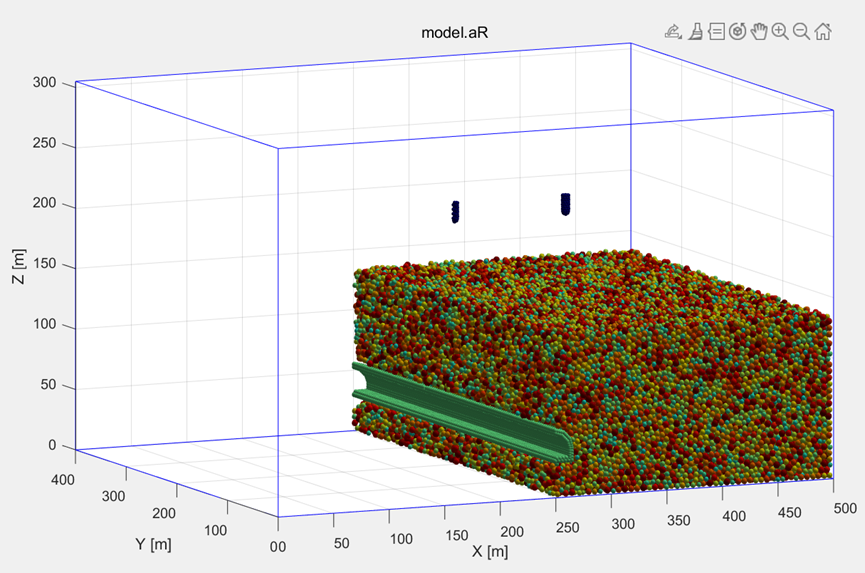 在第十次“离散元法与MatDEM技术培训”中,将分享user_ MissileExplosion案例。如以下动图所示,该案例模拟了钻地弹从空中到接触岩石地面侵彻与到达起爆点爆破的全过程。采用笔记本电脑(4060显卡),计算耗时约80分钟,模拟真实世界0.5秒钟。