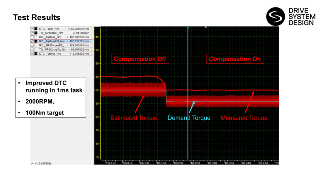 任何技术都要经过实战检验,DSD 团队针对 “快速回路(算法高频执行环节)中使用实测扭矩” 这个关键挑战,做了详细的测试验证。