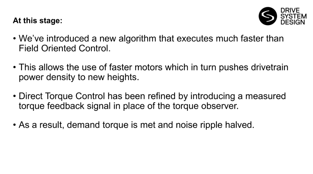 简单说,就是给电机装了 “触觉传感器”—— 不再靠算法 “猜” 扭矩,而是直接测量实际输出的扭矩,再反馈给 DTC 算法做调整。这样一来,有两个明显的提升: