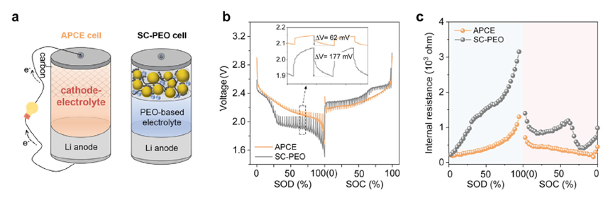 如果比PEO的话,应该是性能更优了,比如这里的电压极化更小,内阻更低