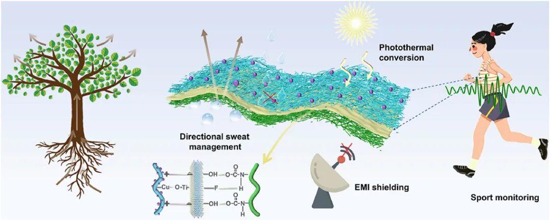 具有层次化结构的仿生纳米纤维膜,可用于定向排汗、光热转换、电磁防护和运动监测