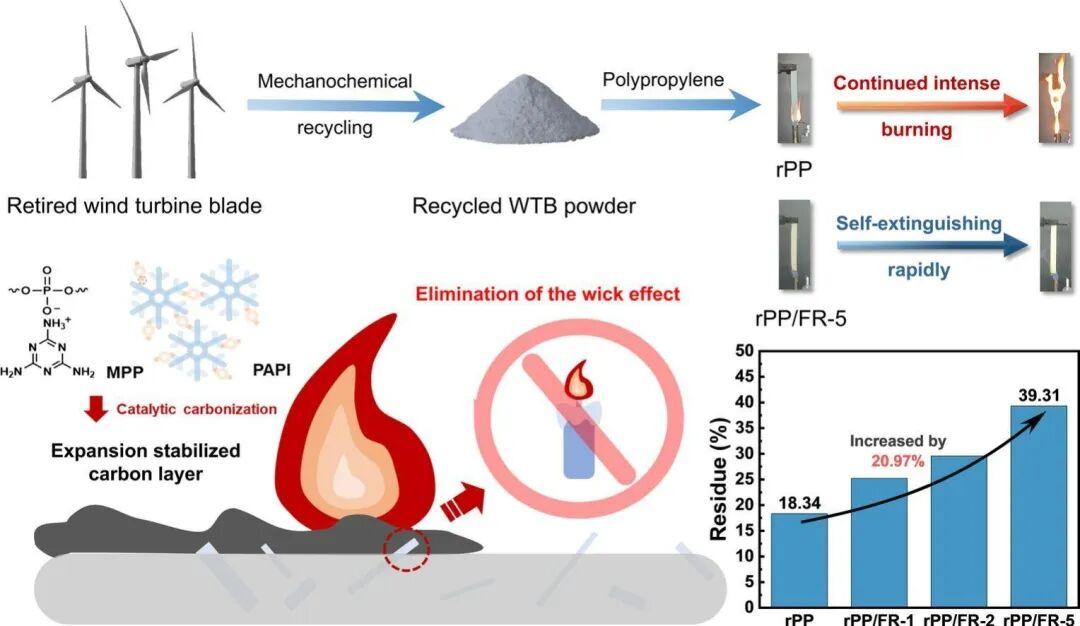 再生风力发电机叶片粉末增强高性能聚丙烯复合材料的磷氮协同阻燃系统