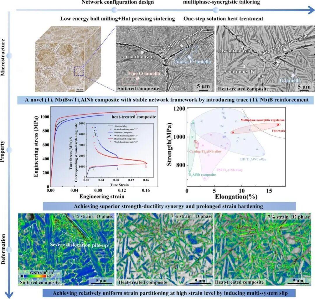 多相协同调控策略实现了(Ti, Nb) b增强Ti2AlNb复合材料优异的强度塑性和长时间的应变硬化