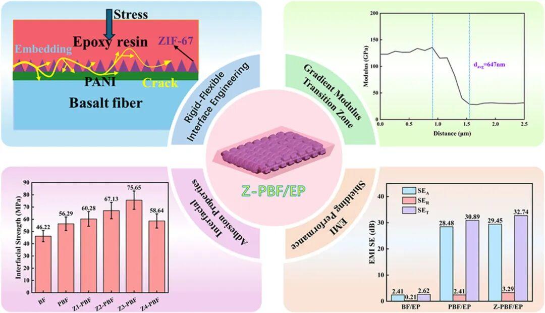 具有电磁干扰屏蔽性能的高性能环氧复合材料PANI/ZIF-67涂层玄武岩纤维的刚柔界面工程