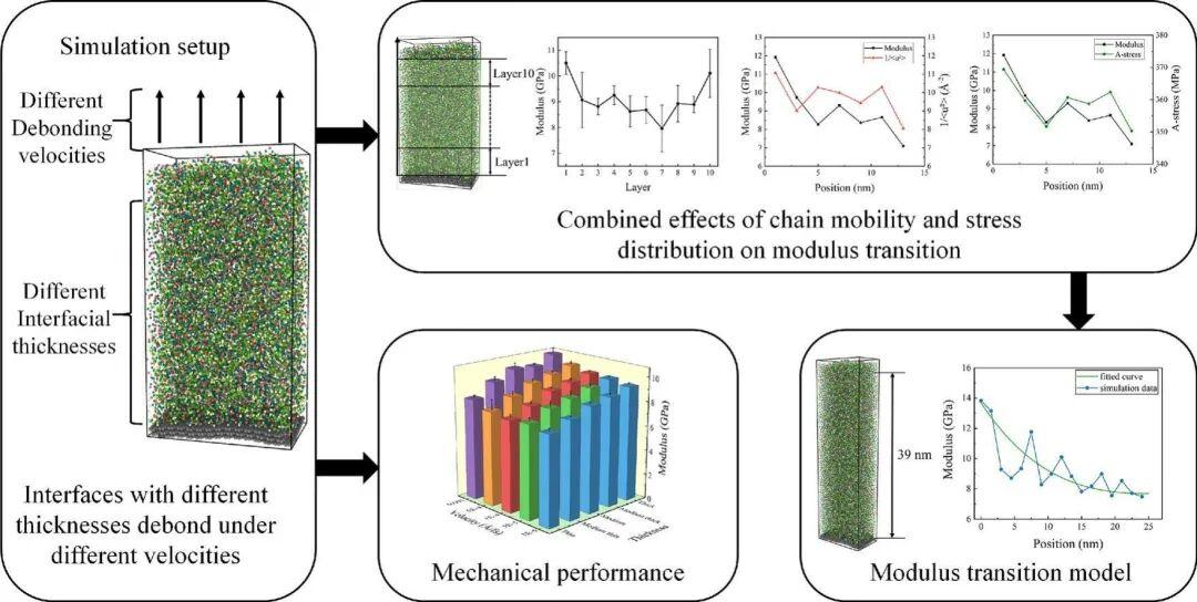 纤维-树脂界面模量转变的粗粒度分子动力学研究及脱粘条件对脱粘行为的影响