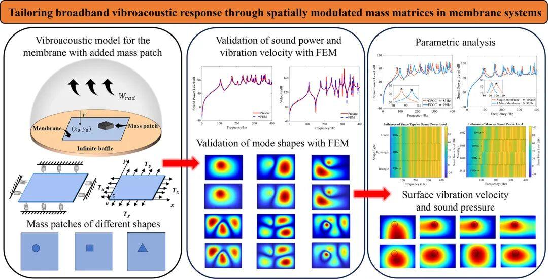通过空间调制质量矩阵在膜系统中裁剪宽带振动声响应