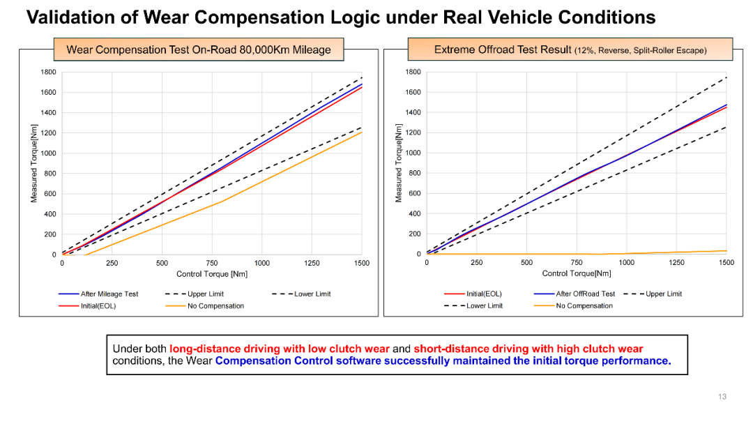 台架测试的结论很明确:补偿逻辑能让球形坡道离合器在 30 万公里的生命周期内,始终保持初始扭矩精度。