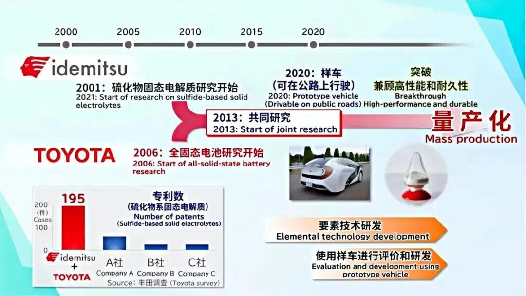 过去多年,丰田一直是汽车市场的领头羊,而且他们很早就宣布要布局新能源汽车的发展。据说此前丰田一共投入了1.5万亿日元专门进行固态电池技术的研究,他们所宣称的研究专利超过了1300项。