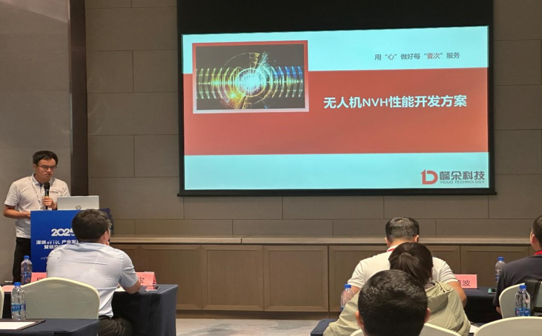 此外,作为振动噪声领域的专业技术服务供应商,懿朵科技在大会上发表了题为“无人机NVH性能开发方案”的专题报告。李奇博士在报告中,重点阐述了面向适航认证的无人机NVH系统性能解决方案,并分享了关键技术与典型工程实践案例,为提升产品性能与用户体验提供了坚实的技术支持。