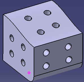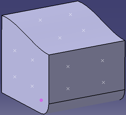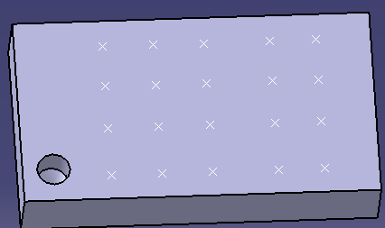The Sketch-Based Features section. You can create multiple holes in a single operation on different supports. the available positioning objects are point on surface, point on plane, and sketch.可以看出,创建多孔命令被添加到基于草图的特征工具条上,其可以在不同的支持面上一次性批零打孔,但是遗憾的是定位孔的特征仅支持三种类型(曲面上的点特征,平面上的点特征,草图特征),如下图片我们展示一下使用多孔命令一次性批量打孔前后对比效果.打孔之前(在如下实体外表面创建三种类型的特征点:平面上的点,曲面上的点,草图中的点)打孔之后的效果如下所示,一个命令批量搞定,但是使用多孔过程中,紫色的点是无法被选中的,也就是无法基于紫色的点进行打孔,因为紫色的点是基于实体上的圆弧创建的圆心点(不属于前述三种类型),虽然这个点逻辑上也是在实体左侧的平面上.另外如果我们将上图所有的白色点提前消参,那么也是无法基于它们进行多孔打孔的(也不支持消参点定位),所以新功能尚未完全成功,还需继续优化,另外多孔命令也无法像普通孔命令那样提前预选多段拓扑圆弧来自动实现孔位捕捉(其实这反而是很多工装设计者普遍需要的).关于多孔命令的其他选项与普通孔类似,不再赘述. ▲ 创建多孔