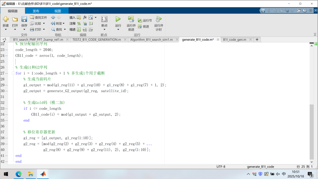 那么先根据这个表产生所有卫星的测距码!再次回顾Gold序列的特点。Gold序列是R.Gold在m序列基础上提出并分析的一种特性较好的伪随机序列。它是由两个码长相等、码速率相同的m序列优选对通过模2相加构成。Gold序列有和m序列非常相似的伪随机特性,而且其相同长度的伪随机码组数量要远远多于m序列,这使得该序列在无线基站测距系统中可以用码分的方式进行基站的区分。大家感兴趣的话,可以由此课题扩展到地面移动通信领域的研究中。同时建议大家看看下面的文章!相辅相成!