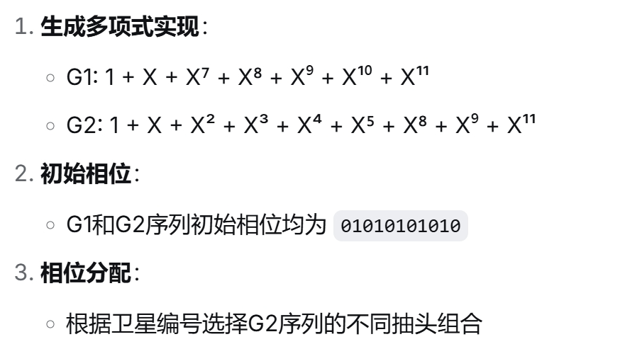 周期:1 ms。这意味着每毫秒,测距码就会完整地重复一次。这个特性非常有利于信号的快速捕获。