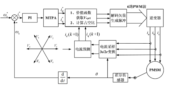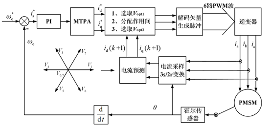 双矢量模型预测转矩控制的控制框图如图(2)所示。其基本原理为: