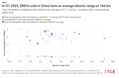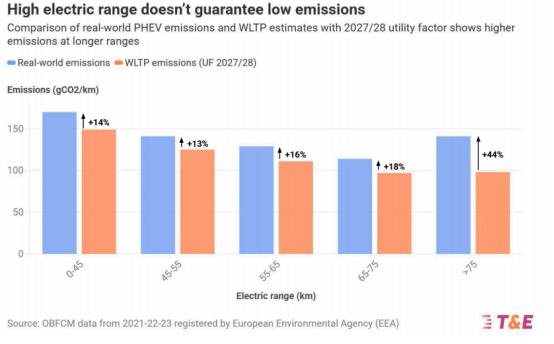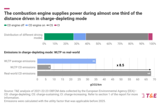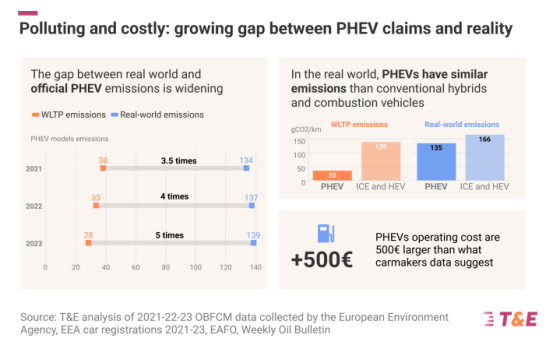 lPHEV在真实世界中的平均CO₂排放量是官方WLTP测试值的5倍(2023年数据)。
