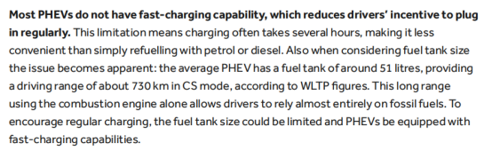 我猜,还是近来几方在围绕后面CO2排放要求的标准修改开展博弈,偏BEV集团/反PHEV集团/想坑德国人集团(你看点名的目标企业就是BBA,以及点名VDA)的态度更多的进入到了这个报告中。通过修改UF效用因子,可以倒逼使PHEV的官方/合规认证上达成排放效果更差,从而降低PHEV的优势,最终使大家更多更快造纯电BEV。