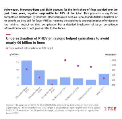 lWLTP对排放的低估,使严重依赖PHEV的车企(如梅赛德斯-奔驰、宝马、大众)更容易达到欧盟车队平均排放标准。