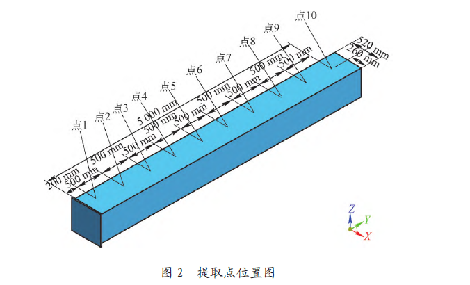 以悬臂梁上盖板为研究对象,间距500mm为提取点,共计提取10个点的计算结果,具体 位置如图2 所示。