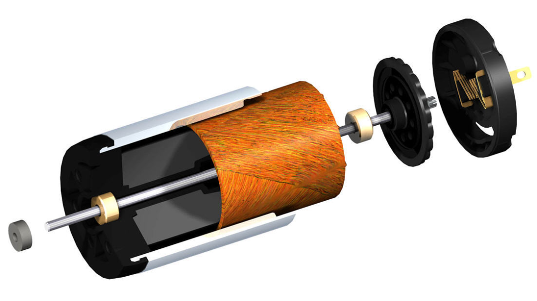 空心杯电机(Hollow‑Cup Motor)是一种 转子采用空心杯形结构 的微型直流电机。它的转子内部为空心,线圈绕在永磁体与外壳之间的气隙中,形成 无铁芯、无齿槽 的磁路。由于省去了传统铁芯的涡流损耗,转子惯性大幅降低,电机能够实现 高转速、低噪音、高效率 的运行特性。