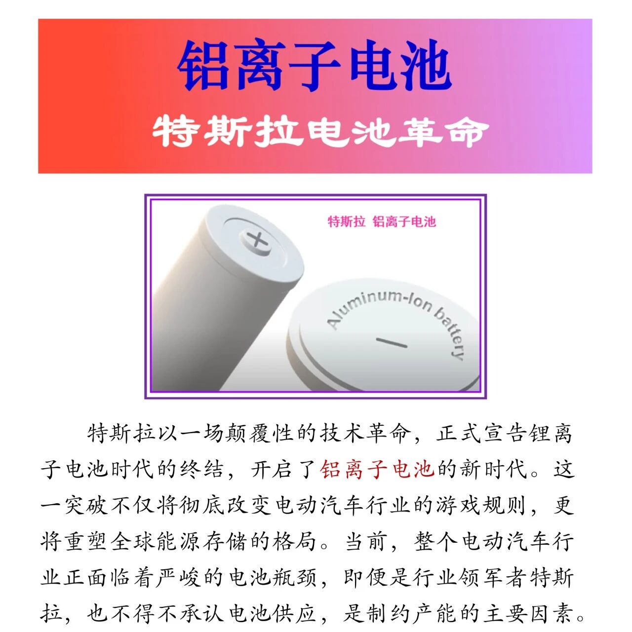 复材技术·铝离子电池-特斯拉电池革命杨超凡简介:飞机制造高级专家,近年专攻民机复合材料。原航空工业部首批研究员级高级工程师,享受国务院特殊津贴。来源:碳纤维生产技术