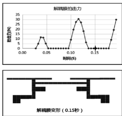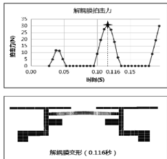 为了“看见”悬置内部的冲击过程,广汽工程师采用了流固耦合有限元分析这一先进CAE技术,对悬置内部结构进行了高精度建模。分析结果清晰地揭示了拍击过程:在解耦膜与盖板接触的瞬间,会产生一个短暂的冲击力峰值。下图左侧的压强云图显示了拍击时刻的受力分布,右侧的动画与曲线对比则直观展示了冲击力的产生过程。通过分析,工程师成功提取出拍击力时间曲线,将难以捉摸的异响转化为了可量化的工程数据。找到临界点:制定异响的设计标准
