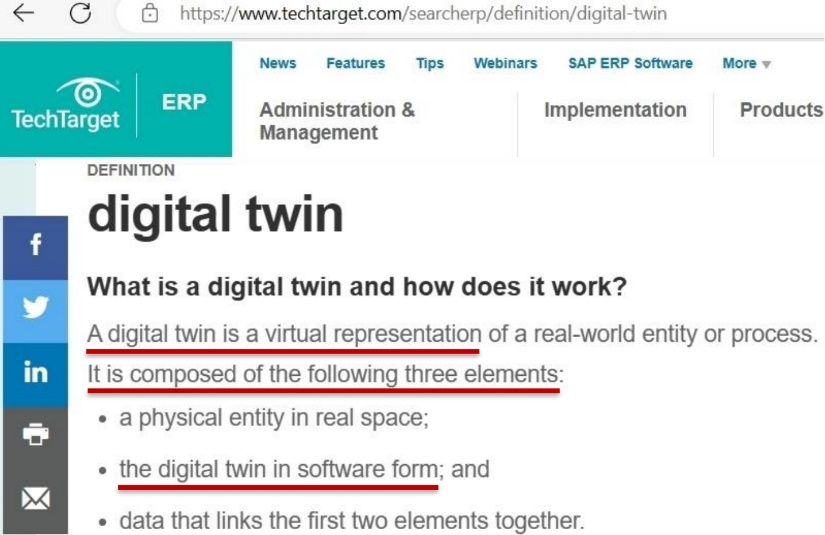数字孪生:通过所关注实体的数字化同步的表征和执行来分析、优化其行为或功能实现的技术体系、专业领域或产业生态。