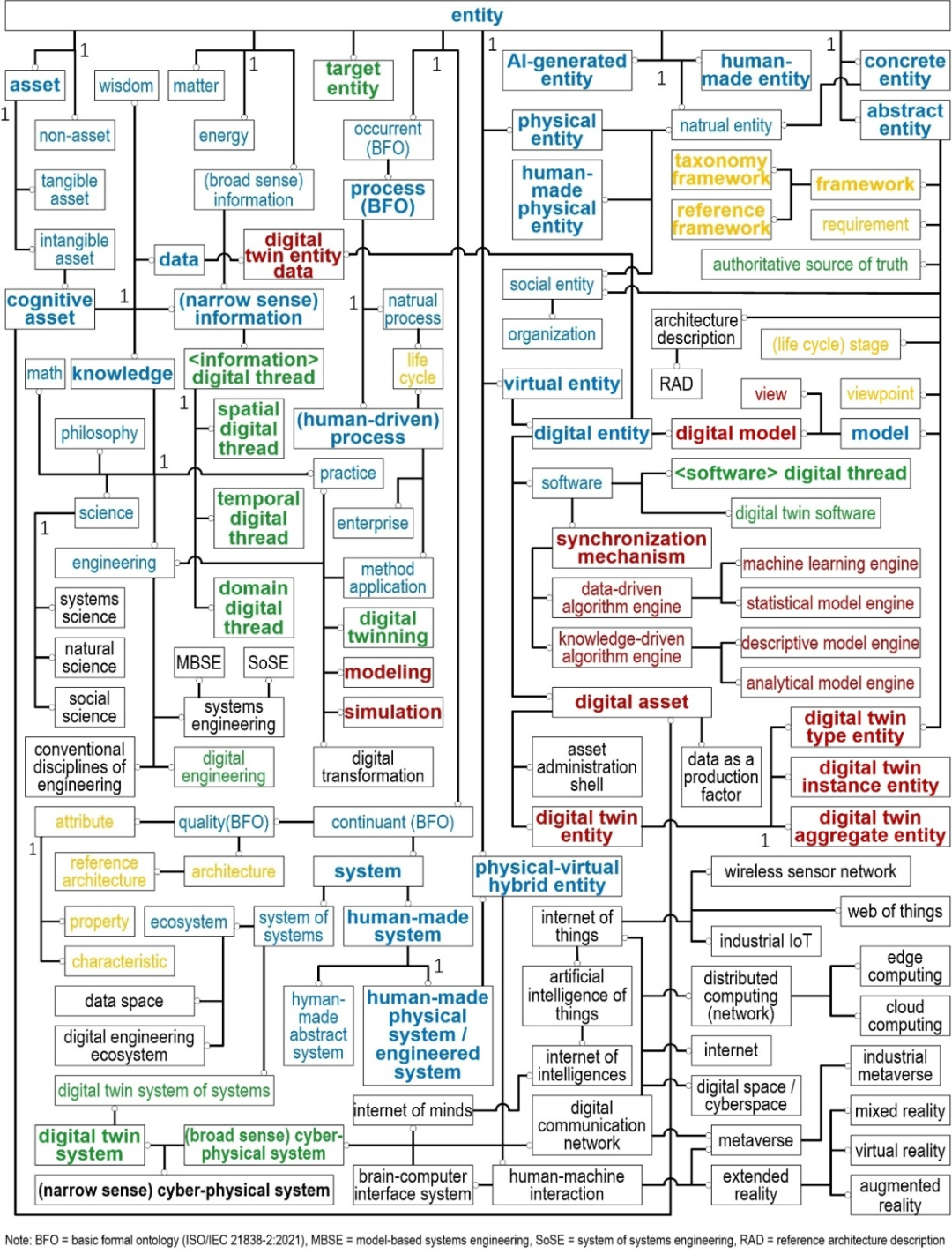 这种概念上的模糊性和边界不清,在时空两个维度上广泛存在(图1),已经成为阻碍行业内有效沟通、妨碍不同厂商产品与系统间互操作性、以及迟滞全球标准化进程的根本性障碍。为解决这一关键瓶颈,构建一套逻辑严谨、覆盖全面、并能获得广泛行业共识的概念与术语体系,已成为数字孪生领域发展的当务之急。