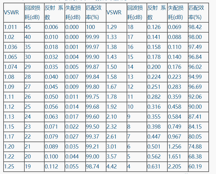 回波损耗是不常用的数据,常用的数据是驻波比和反射系数