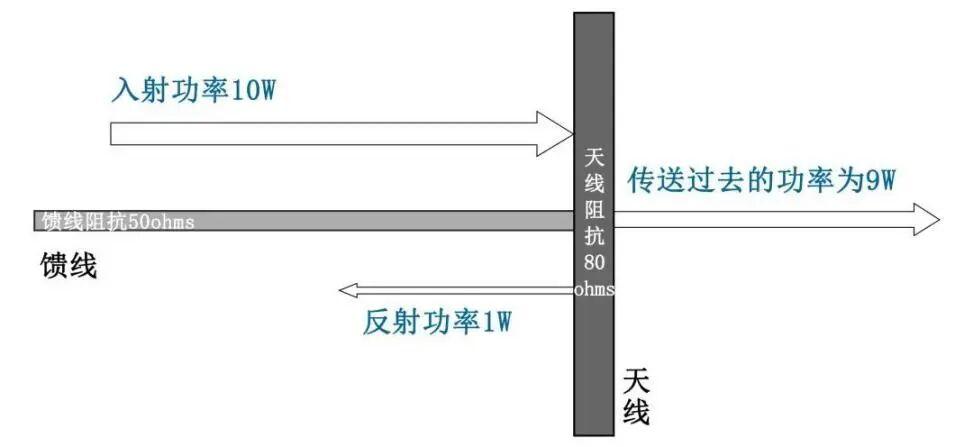 当天线和馈线不匹配时,也就是天线输入阻抗不等于馈线特性阻抗时,负载只能吸收部分能量。